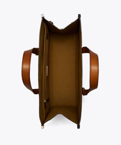 The tote is crafted in contrast embossed leather with an adjustable shoulder strap. Each side of the tote features an inverse color combination, creating two looks in one. Lined in soft microsuede with an interior laptop sleeve, every detail is considered, with special attention to function and versatility.