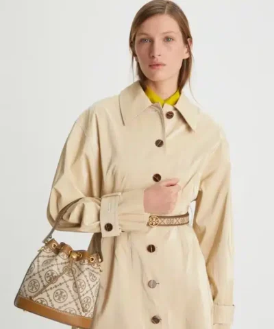 Tory Burch T Monogram Jacquard Bucket Bag, Hazelnut