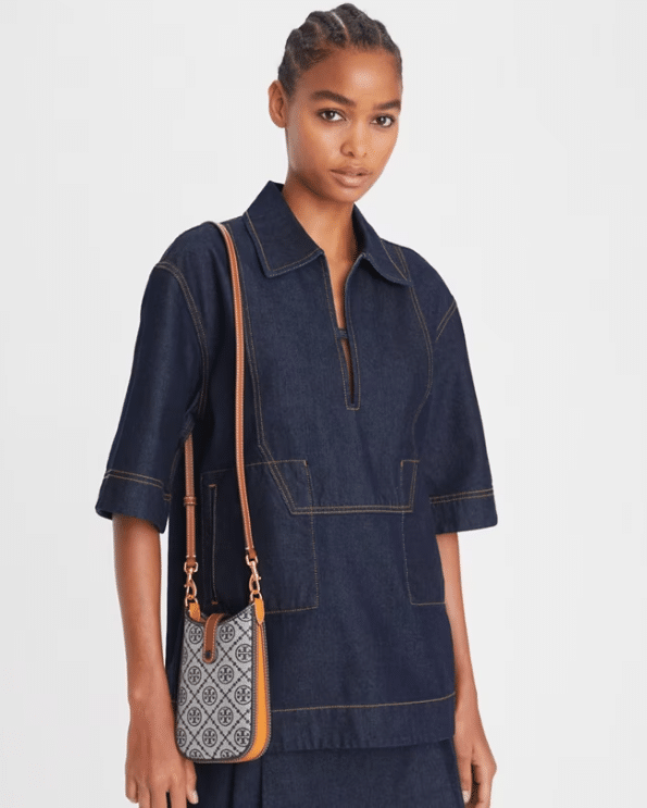 T Monogram is a classic pattern inspired by Pennsylvania Dutch quilting. The collection speaks to the timelessness of great style. Meticulously crafted in woven jacquard, the T Monogram Phone Crossbody keeps essentials close and organized. A central phone compartment has multiple card slots and a removable crossbody strap.
