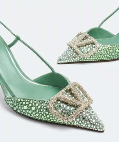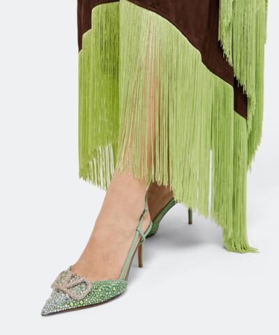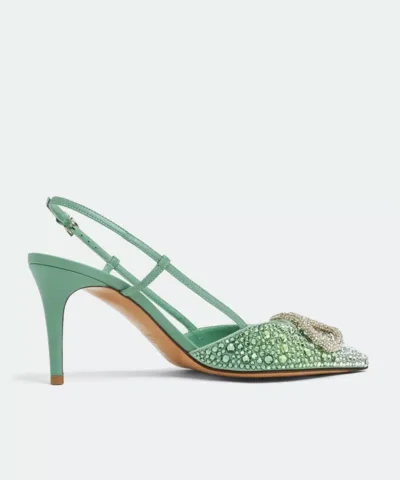 Inspired by the elegant geometries of the seventies, Valentino Garavani’s VLogo Signature pumps are an impeccable balance between shape and colour. Updated for the brand’s Ramadan capsule, this Middle East exclusive style is crafted with crystal-embellished leather to a pointed toe which showcases the crystal-covered logo. The high heel makes them ideal for the day-to-night transition.