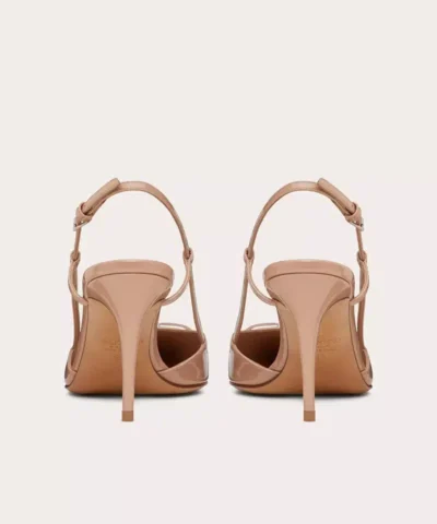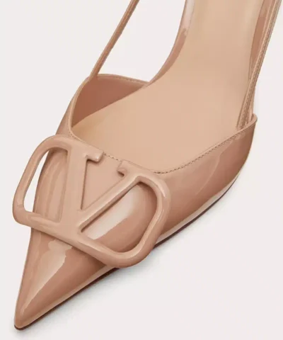 Valentino Garavani patent leather slingback pump with VLogo Signature embellishment.