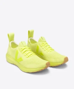 The Womens Veja x Rick Owens Runner Style 2 V-Knit in the Yellow & Orange colourway, features a two-tone V logo and oyster colour soles. Veja and Rick Owens merge their two worlds for this 4th consecutive collaboration to redefine the Runner Style Model, and with a construction of almost entirely recycled plastic, you can look and feel good.