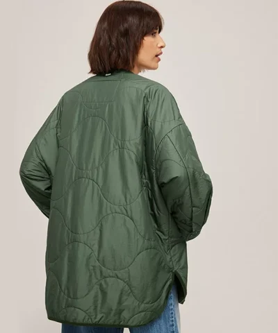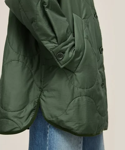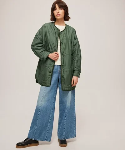 The Khaki Freddy Coat is a classic and timeless outerwear silhouette you will wear for years to come. With a sleek all-over quilting pattern, this neutral jacket has a charming button down front and a flattering curved hem which makes it easy to style with nearly anything. Layer yours over hoodies or turtlenecks for country strolls in the crisp air.